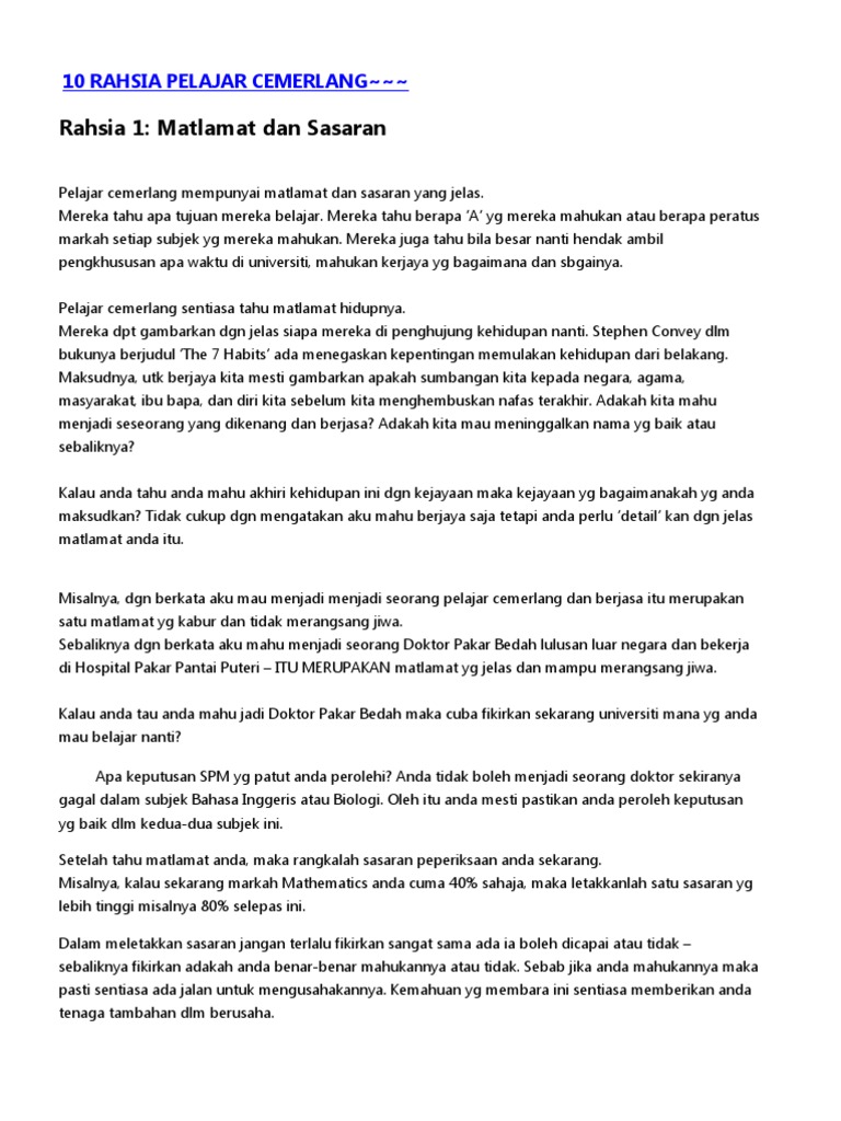 Ciri Ciri Pelajar Cemerlang Sahsiah Dan Peribadi Unggul